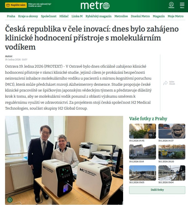 Česká republika v čele inovací: dnes bylo zahájeno klinické hodnocení přístroje s molekulárním vodíkem